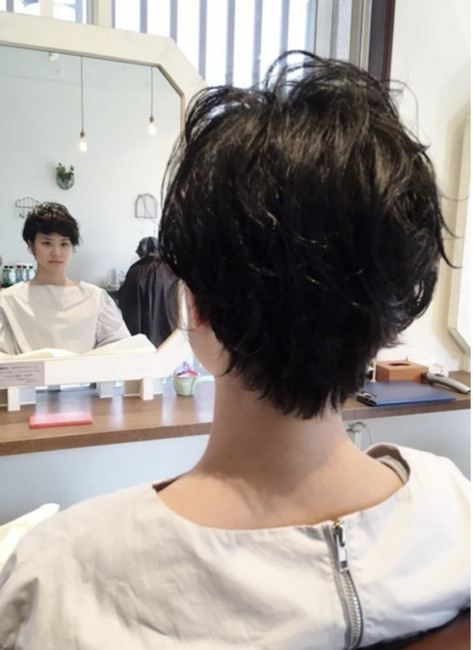 黒髪ショート×パーマ