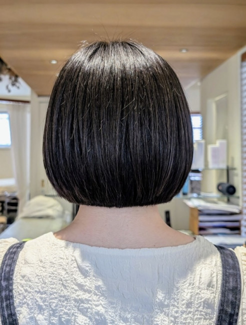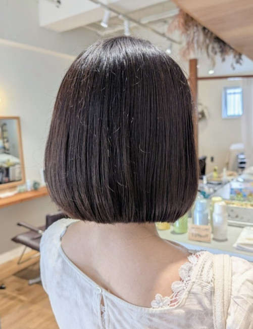 襟足の長さにもよりますが、顎ラインまでいくと自然と内に入るような丸みのあるデザインにするのがまとまりやすくてオススメです。朝の寝ぐせ直しだけで綺麗にまとまるのも、この長さの特徴です